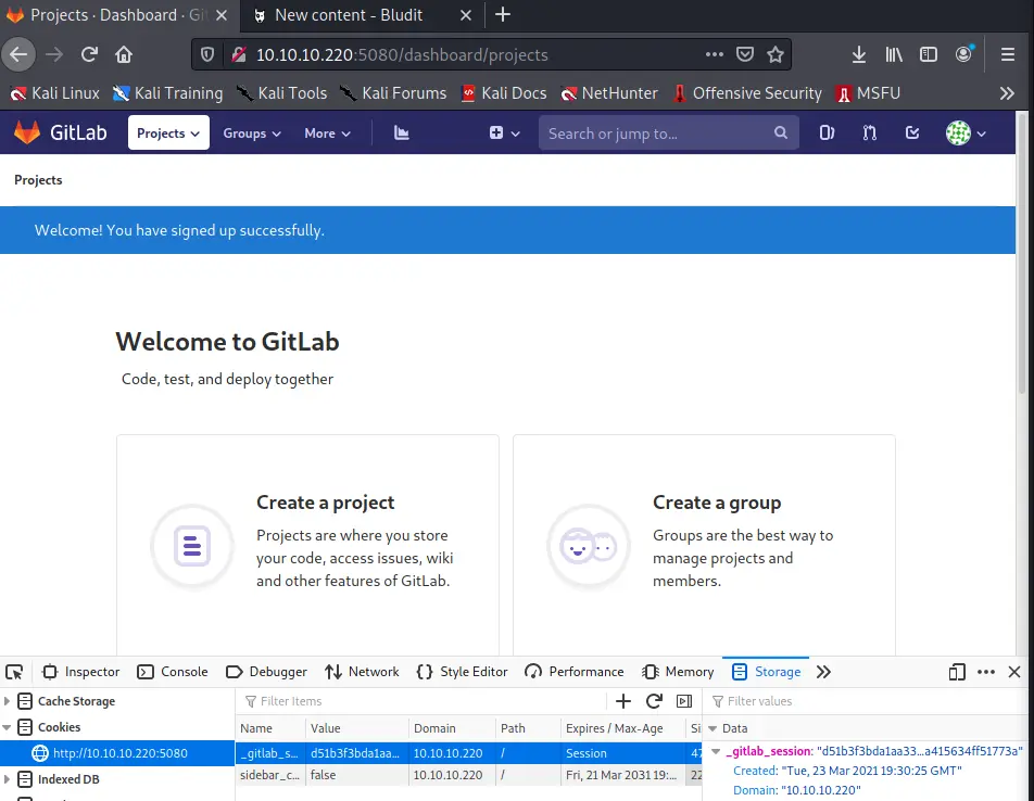 With the Onscreenport :5080 a website hosting Gitlab can be accessed.